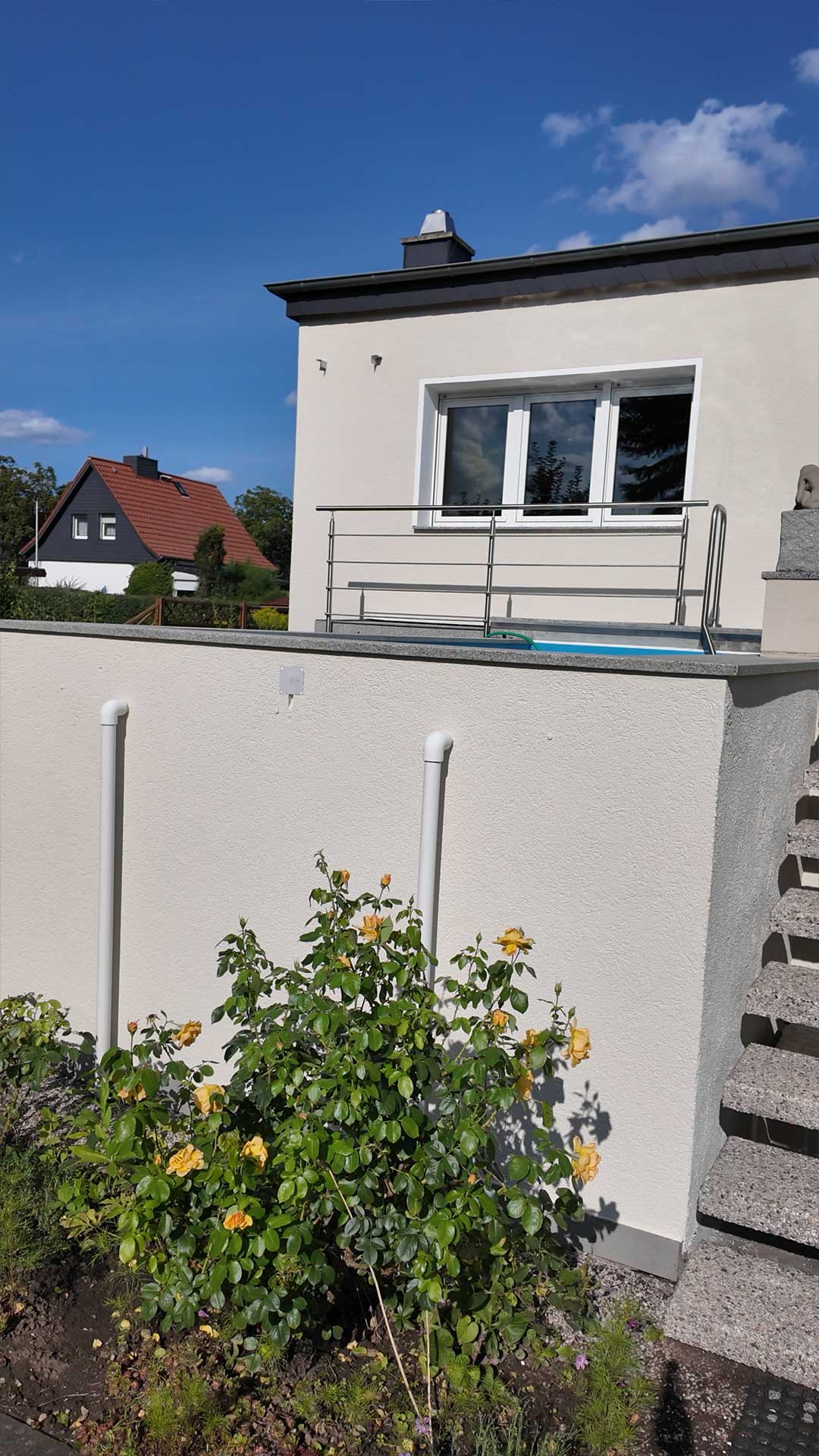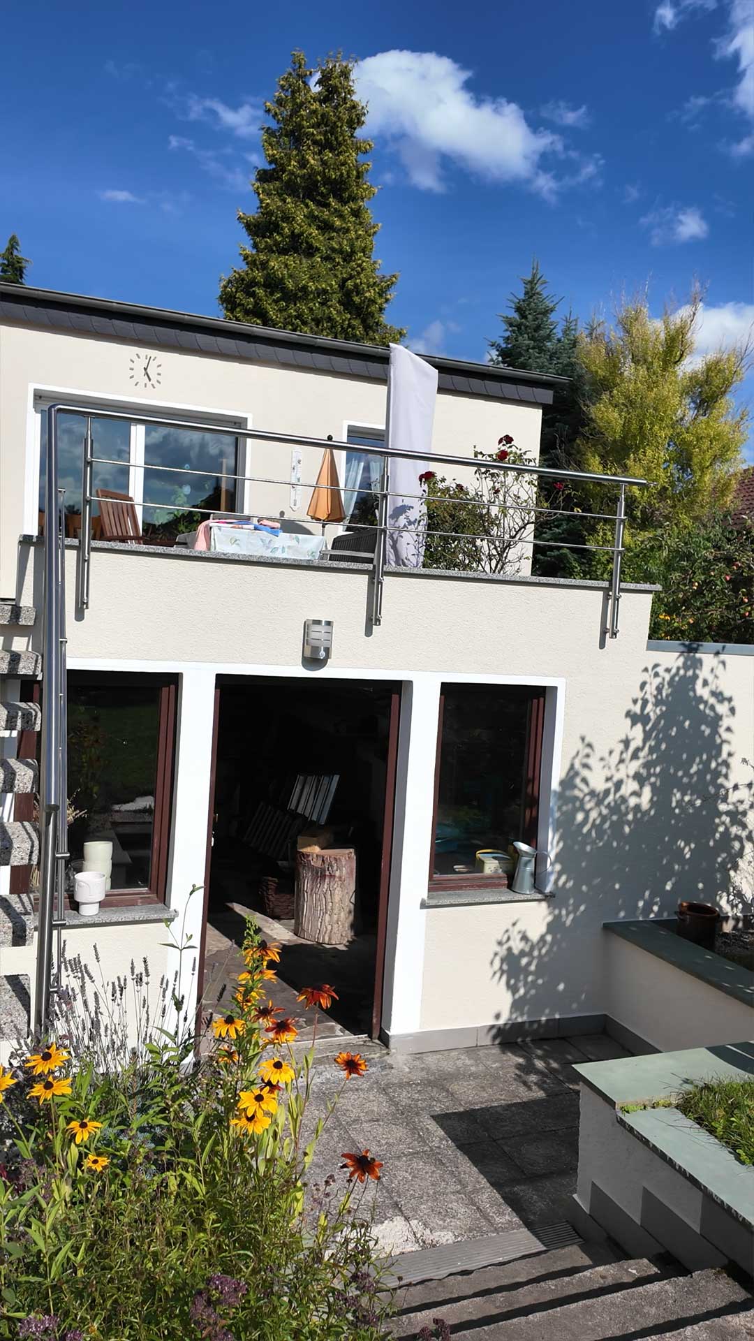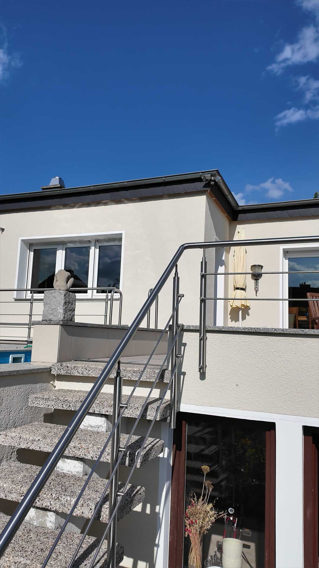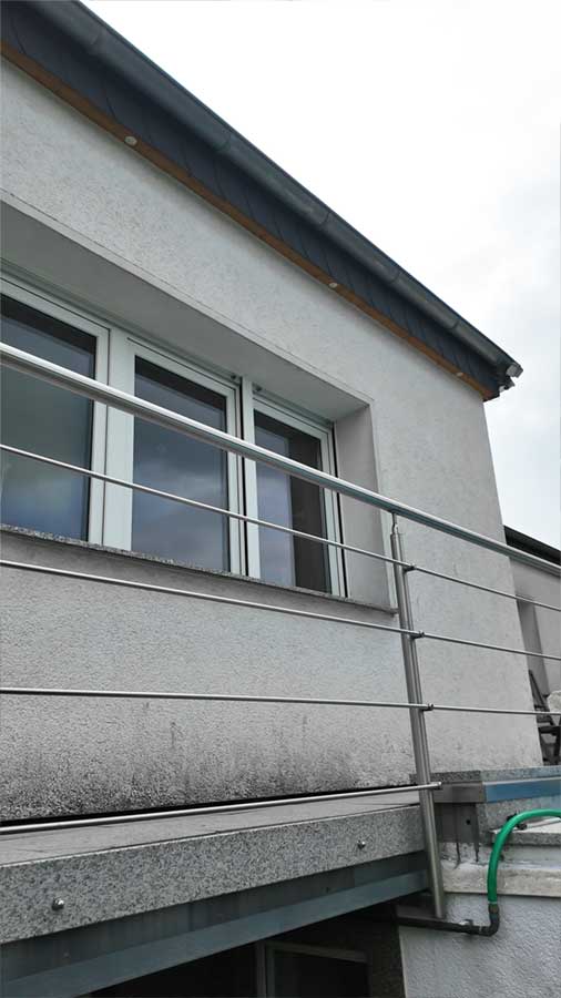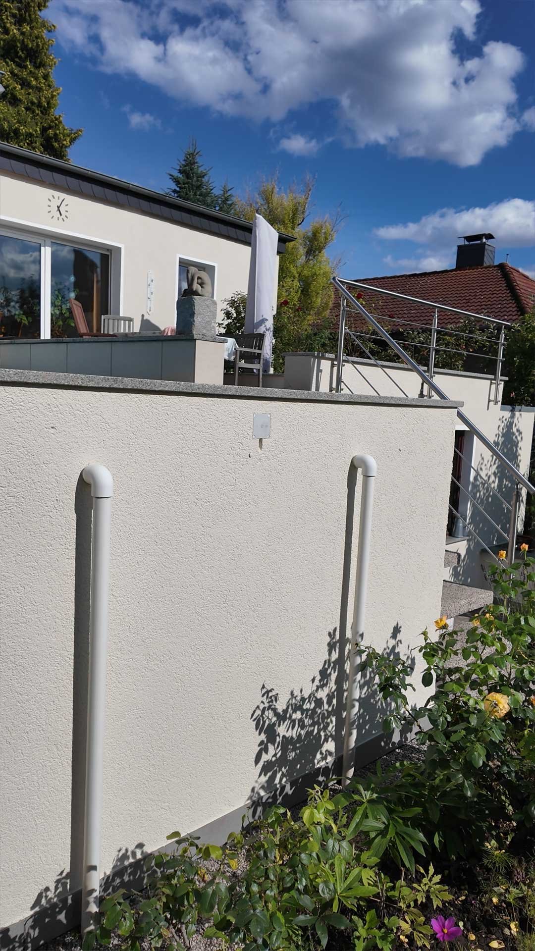 Zuerst erfolgte die Prüfung des Putzes und die Reparatur der schadhaften Stellen. Im Anschluss wurde die Fassade mit einer faserverstärkten Fassadenfarbe (Silikat) gestrichen. Nach Trocknung wurde die Fassde noch zwei Mal mit Silikat Farbe gestrichen, die Leibungen und Faschen haben wir abgesetzt.